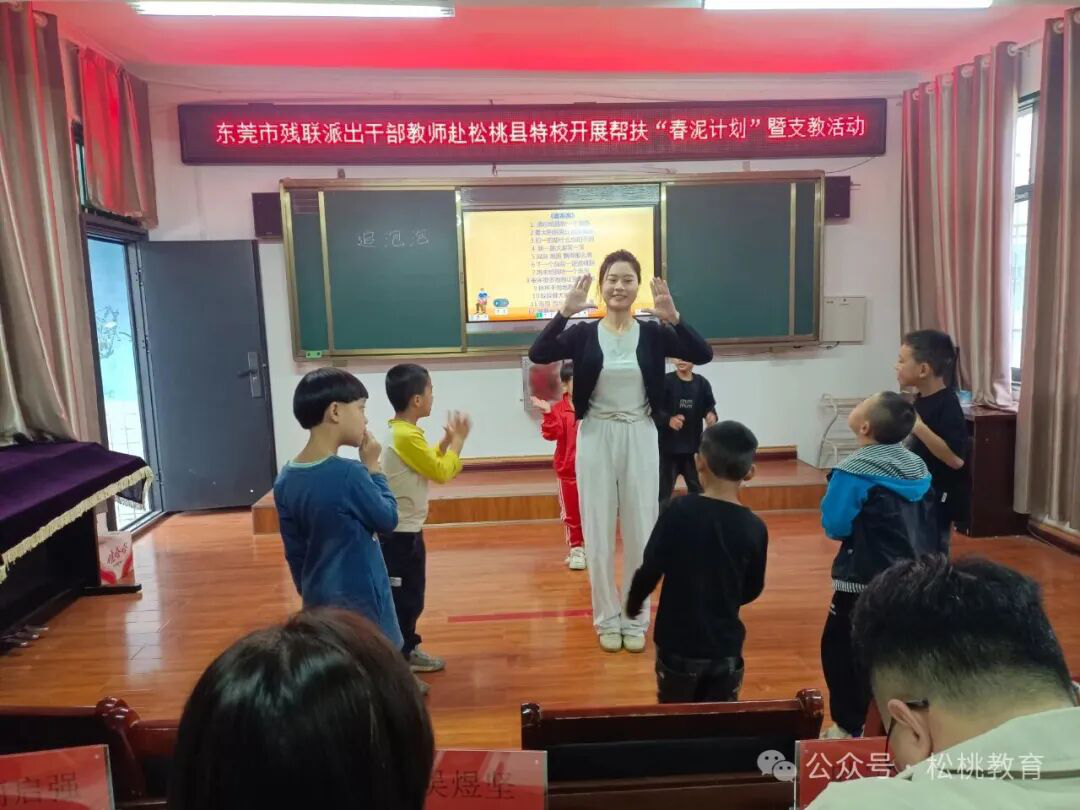 在松桃县特殊教育学校交流活动期间,4位教师了解到学校的建设情况后,与松桃特校教师先后观摩了松桃特校邹治科老师的七年级运动与保健课“森林探险队体能闯关”、宋洁老师的二年级唱游与律动课“追泡泡”。