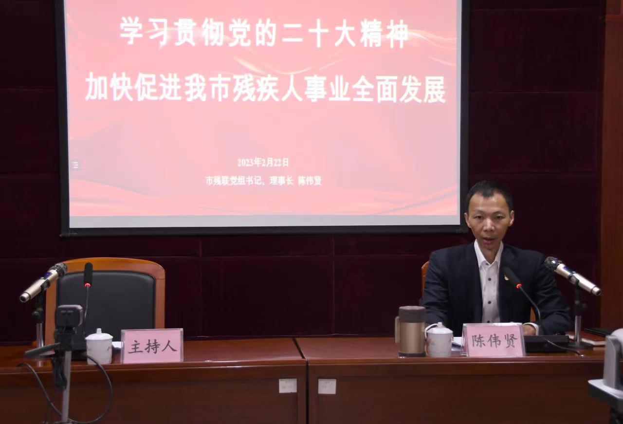 陈伟贤从党的二十大的重大意义和深远影响、党的二十大精神实质和丰富内涵、党的二十大关于残疾人工作的新部署和新要求三个方面对党的二十大精神进行了全面阐释,引导市残联各级党员干部要把学习宣传贯彻党的二十大精神作为当前和今后一个时期的首要政治任务,要统一思想和行动,凝聚智慧和力量,推动我市残疾人事业高质量发展。