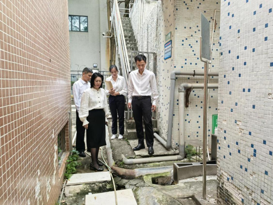陈伟贤实地察看了医院污水处理站、生活垃圾与绿化垃圾回收站及外围公共区域,详细检查了医疗废物与生活垃圾的分类、转运、消杀流程,以及污水处理设施的运行状况。