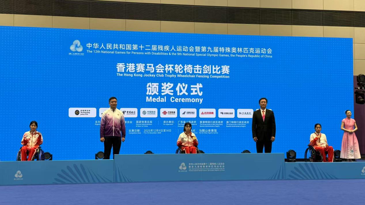 (轮椅击剑女子个人花剑C级颁奖仪式,江柏莹获金牌、严巧芸获铜牌)
