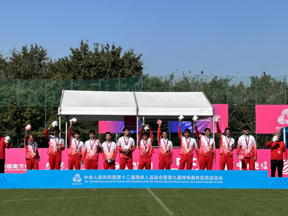在全国第十二届残疾人运动会暨第九届特殊奥林匹克运动会即将落下帷幕之际,赛场上传来令人振奋的捷报。15日上午,盲人足球比赛圆满收官,东莞运动员再添1金。至此,东莞运动员顺利完成本届残特奥会全部比赛任务,勇夺38枚金牌、21枚银牌、21枚铜牌,奖牌总数达80枚,创下东莞参加全国残特奥会历史最佳赛绩,以昂扬斗志和卓越表现为这场全国残疾人体育盛会增添了东莞光彩。