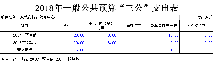 2018年东莞市特殊幼儿中心部门“三公”预算表