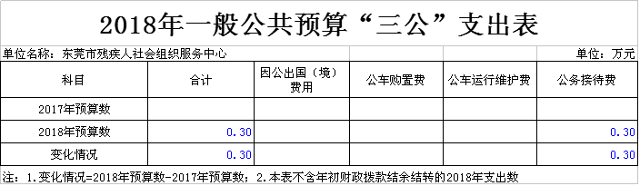 2018年东莞市残疾人社会组织服务中心“三公”预算表