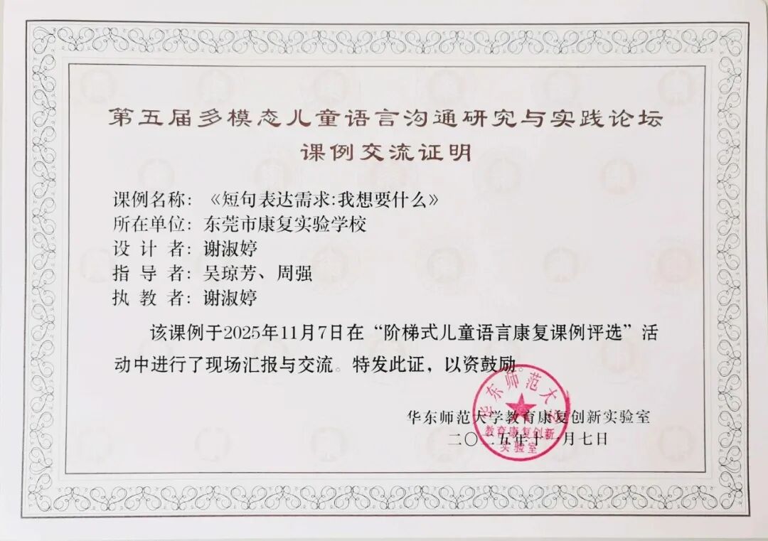 此次全国性学术交流中,东莞市康复实验学校的教学成果不仅获得国家头部专家的权威认可,更向全国同行展示了东莞市康复实验学校在校本化康复课程的创新实践。未来,学校将持续深化特殊儿童语言康复领域的研究与实践,在专家团队的指导下优化课程体系,为特殊学生提供更高质量的教育服务,为推动全国特殊教育高质量发展贡献“东莞经验”。